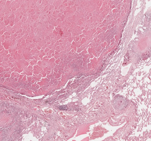 Abb. 461: Scharf begrenzter Nekroseherd mit umgebendem Lungenparenchym