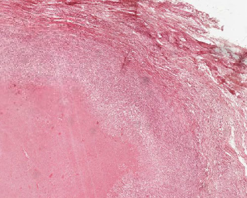 Abb. 570: Zentral käsige Nekrosen, angrenzend breite Fibrosezone