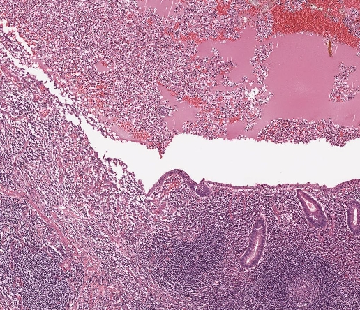 Abb. 450: Akute Entzündung mit Ulzeration des Oberflächenepithels