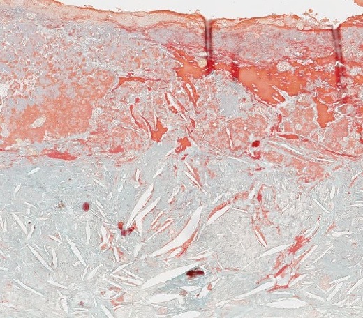 Abb. 416: Arteriosklerotische Veränderungen der Arterienwand mit Cholesterineinschlüssen und Desktruktion der Intima.