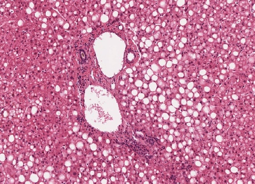 Eine Fettleber liegt vor, wenn mindestens 50% der Hepatozyten intrazytoplasmatische Fetteinlagerungen (überwiegend Triglyceride) aufweisen.