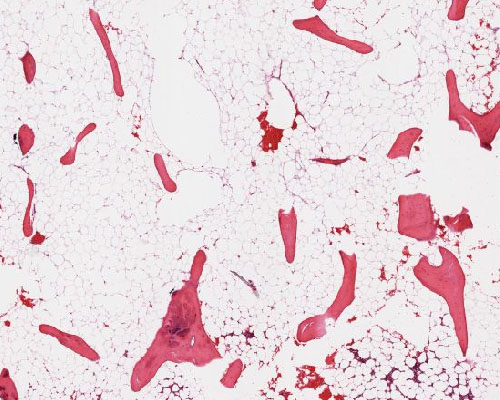 Schmale, deutlich ausgedünnte Trabekel, Fettmark.