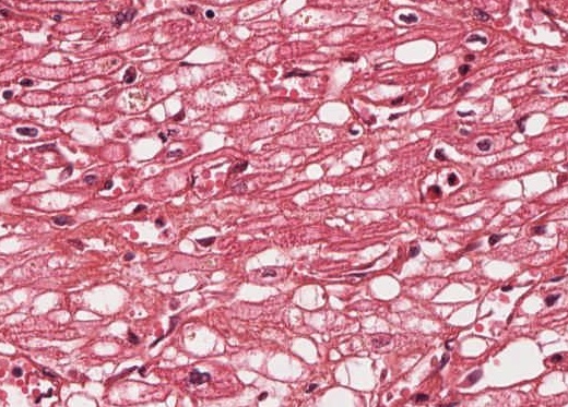 Fibrose und degenerative Veränderungen der Kardiomyozyten.