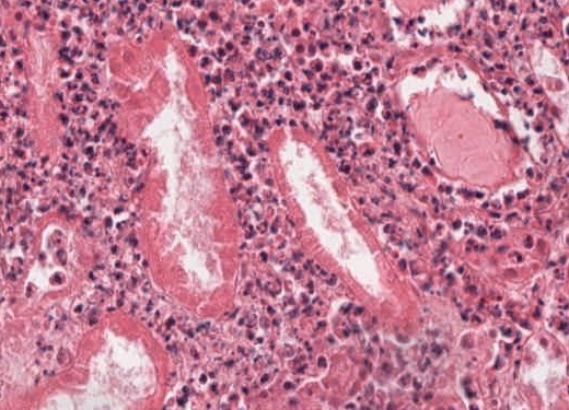 Devitalisierte Nierentubuli mit Verlust der Kernfärbbarkeit