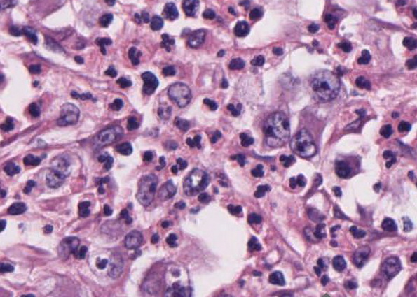 Das anaplastische Schilddrüsenkarzinom macht ca. 2-5% der malignen Schilddrüsentumoren aus. Es entwickelt sich aus Follikelzellen der Schilddrüse. Das histologische Bild ist sehr variabel, häufig sind die Tumorzellen sehr pleomorph mit vielen Mitosen.