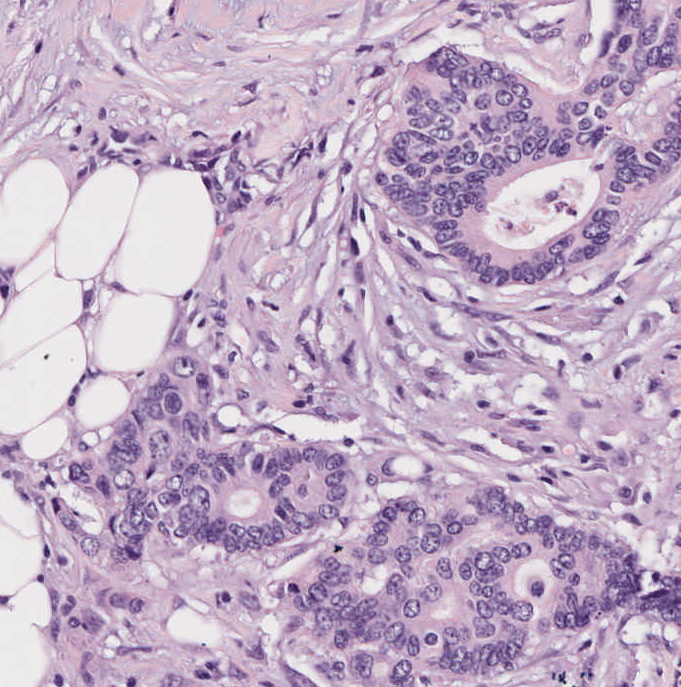 Colonteilresektion; HE; Beachten Sie die Infiltration des parasigmoidalen Fettgewebes