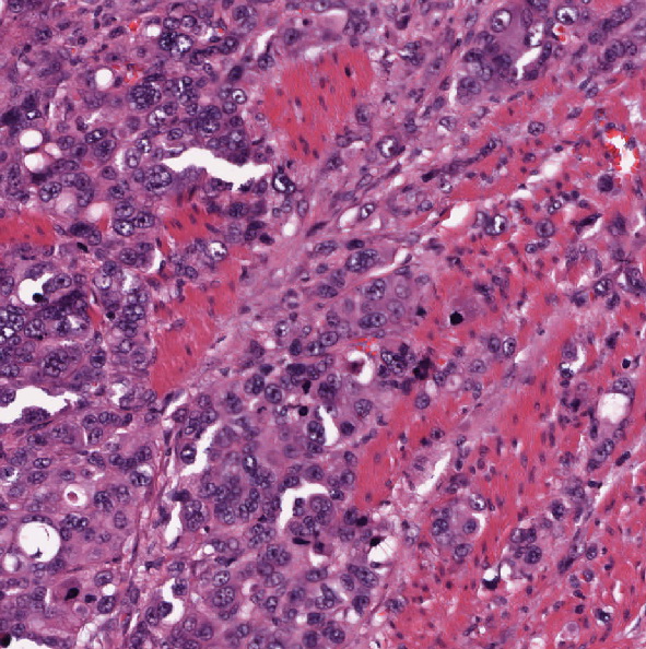 Abb. 169: Barrett-Karzinom: Erkennbar ist eine Invasion des Tumors in die Muskularis.
